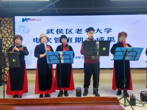 近日,在武侯区老年大学统筹组织下,学校各班级精心开展了以班级为单位的2023—2024学年度上期期末教学成果展示汇报活动。 电吹管班学员吹奏欢快的乐曲展现老...